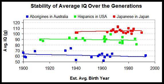 4. La haute stabilité des Q.I raciaux à travers le temps et quel que soit le milieu est la conséquence logique d'une haute héritabilité. Ces informations se retrouvent entre autre dans: